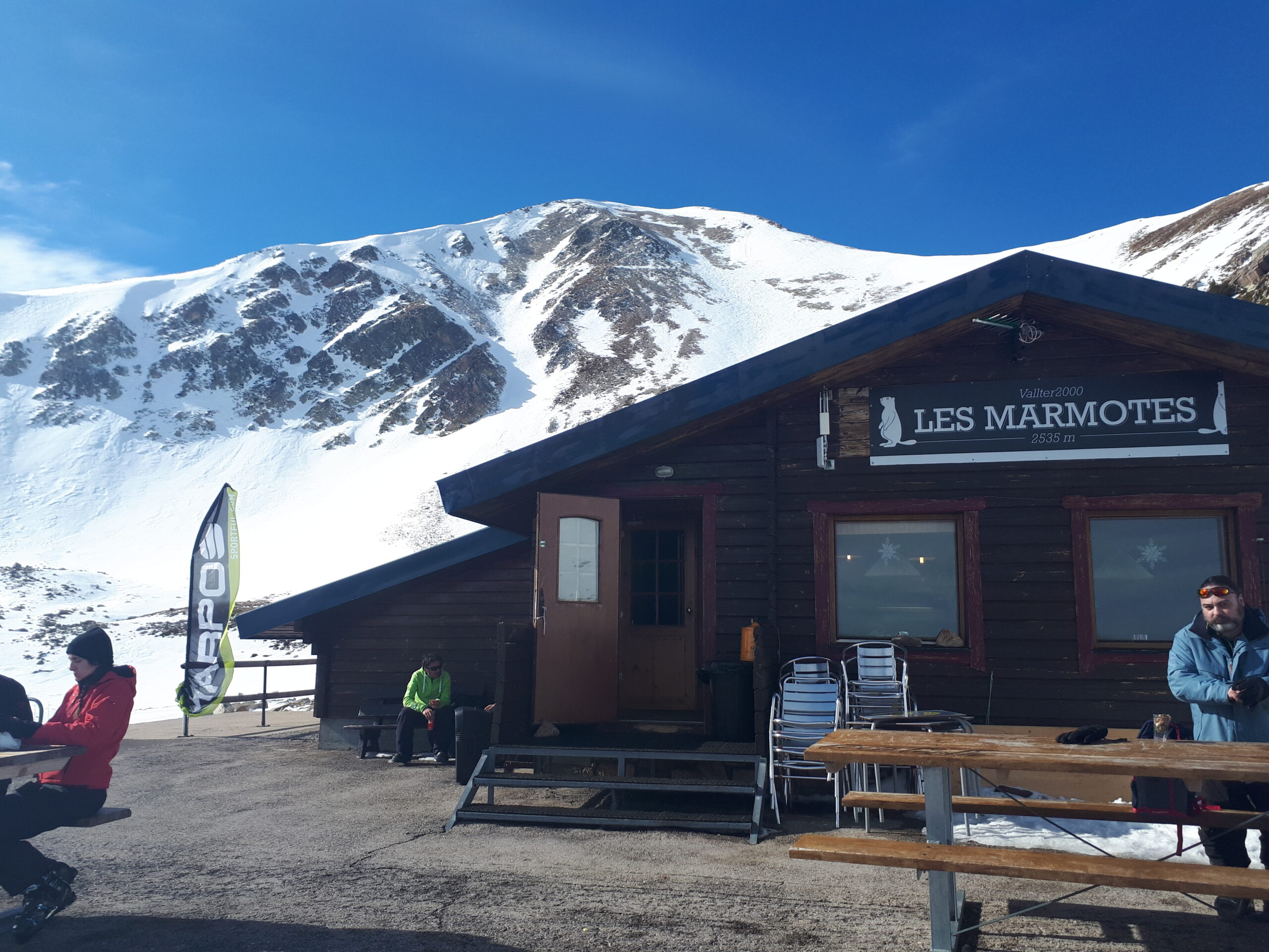 Entre pujades i baixades ens ha agafat gana i aquest és el torn per tornar al mateix lloc d’on veníem a fer un mos a dalt de l’estació, a la cafeteria de les Marmotes. Hem demanat una cervesa, unes patates de bossa i quatre coses més per a picar i fer gana.