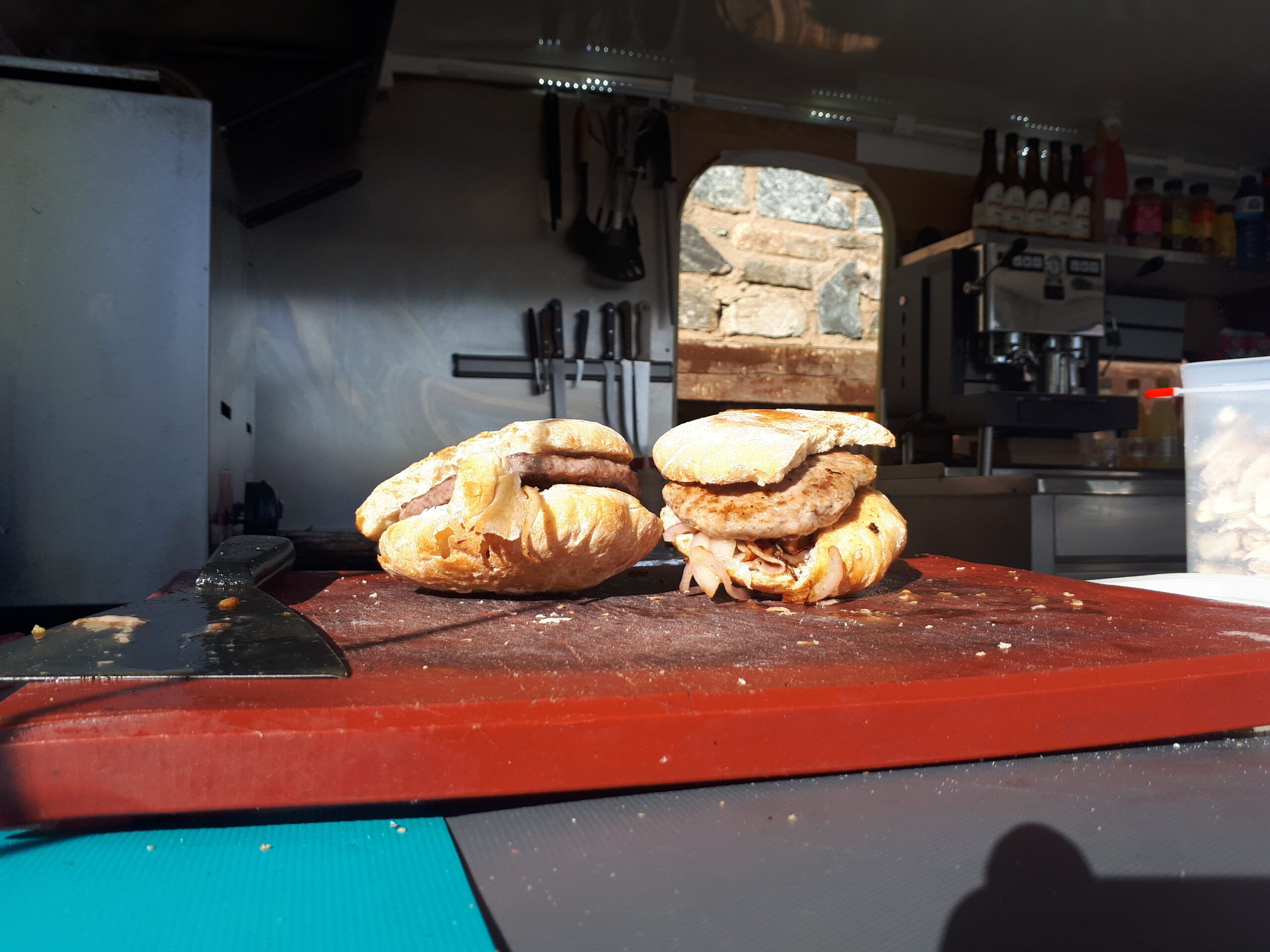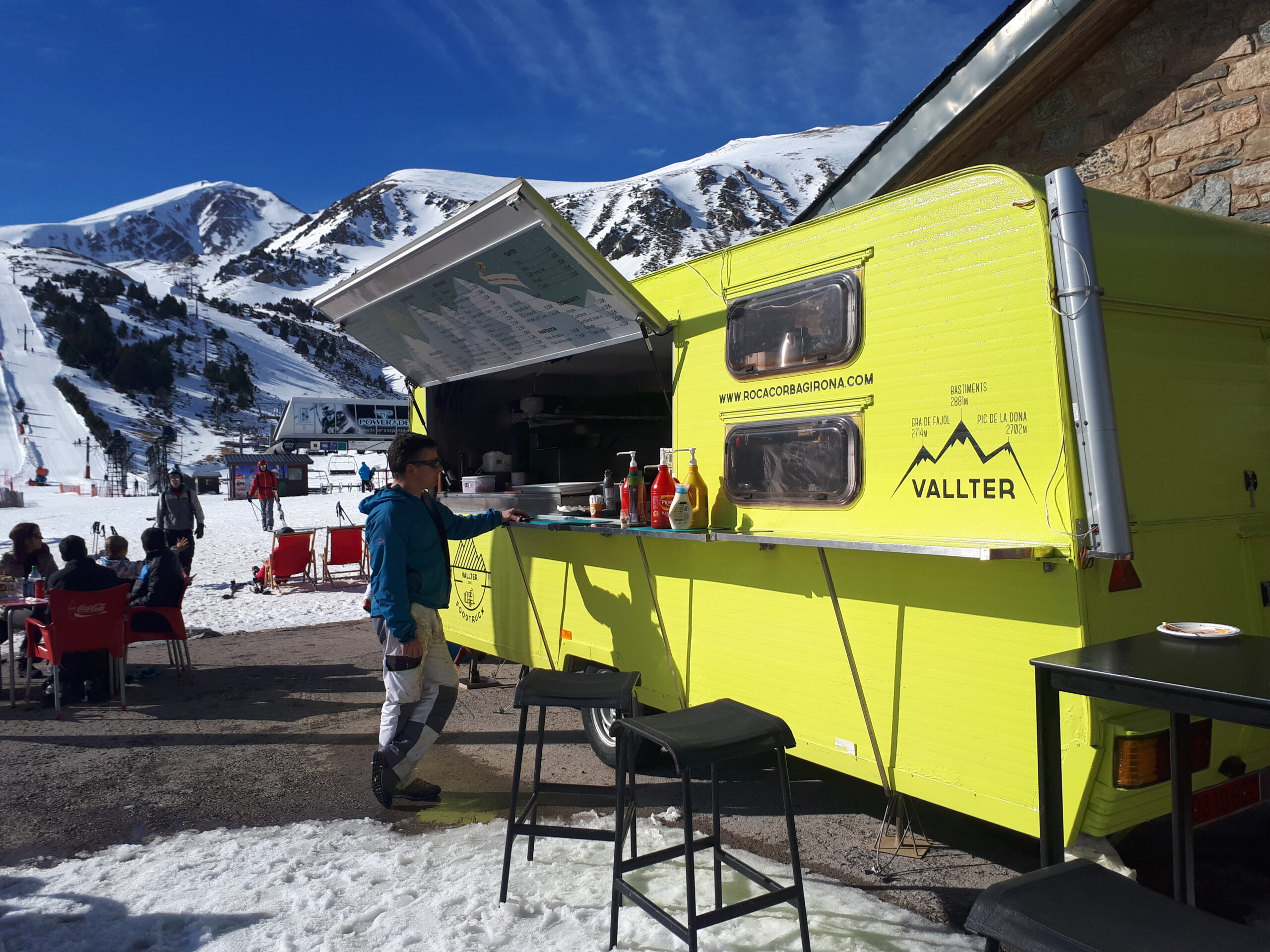 Ara ens desplaçem al foodtrack Roca Corba, un foodtrack que serveixen les millors hamburgueses de la Vall del Freser. Aquest cop ens demanem una hamburguesa de fuà i una altra de vedella. Tot boníssim! I aquí ens trobem als companys de l’Escola d’Esquí Alta Vall del Ter i parlem una mica de l’estat de la neu, pistes, etc.